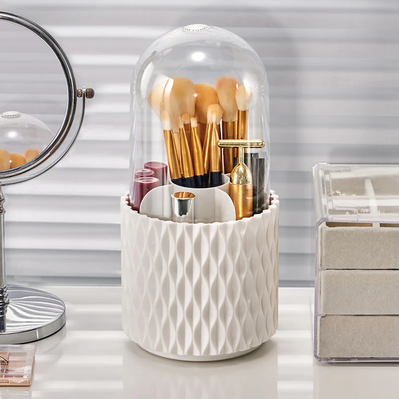Introducing the Rotating Cosmetics Makeup Organizer, your solution to a clutter-free and effortlessly organized vanity space.
