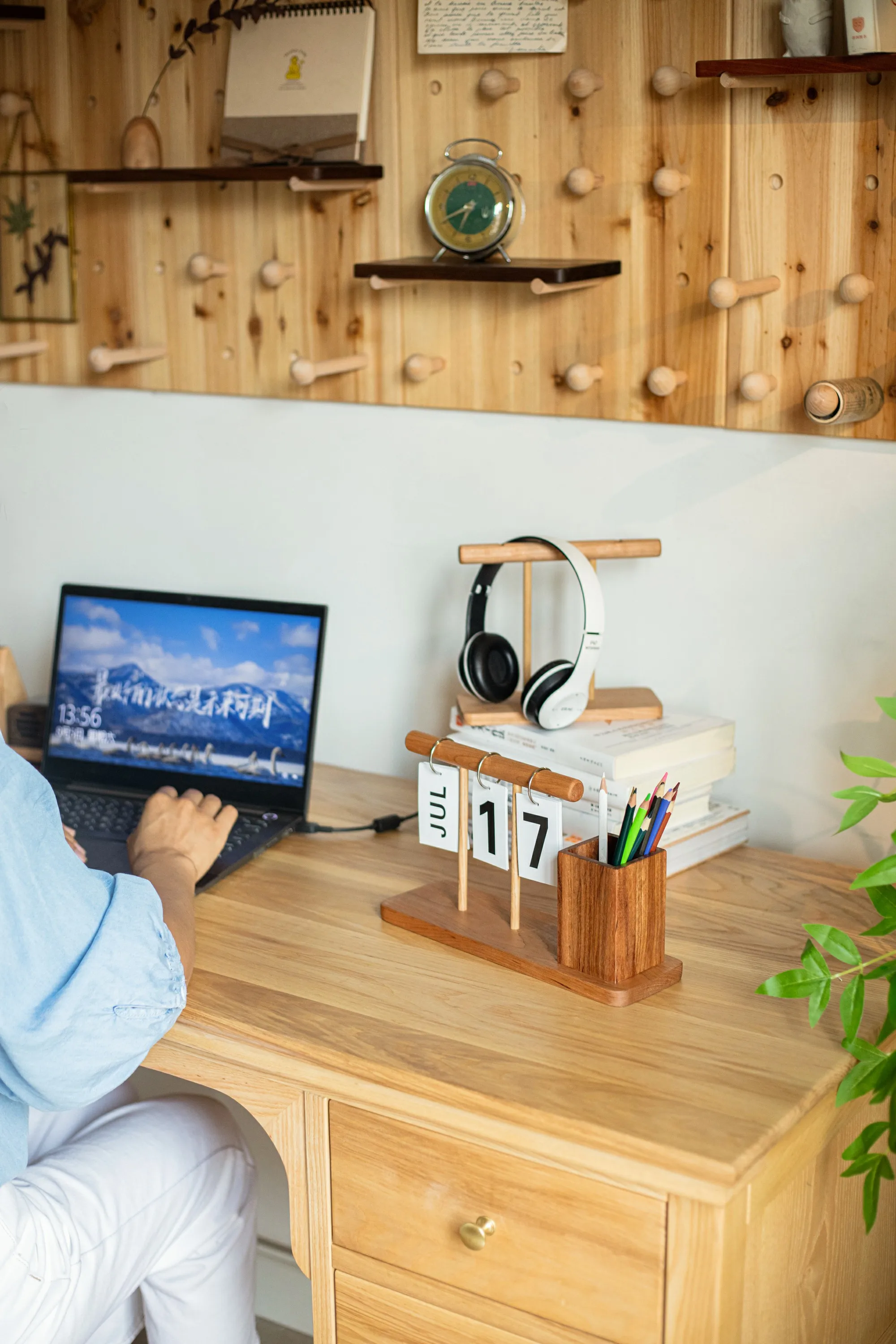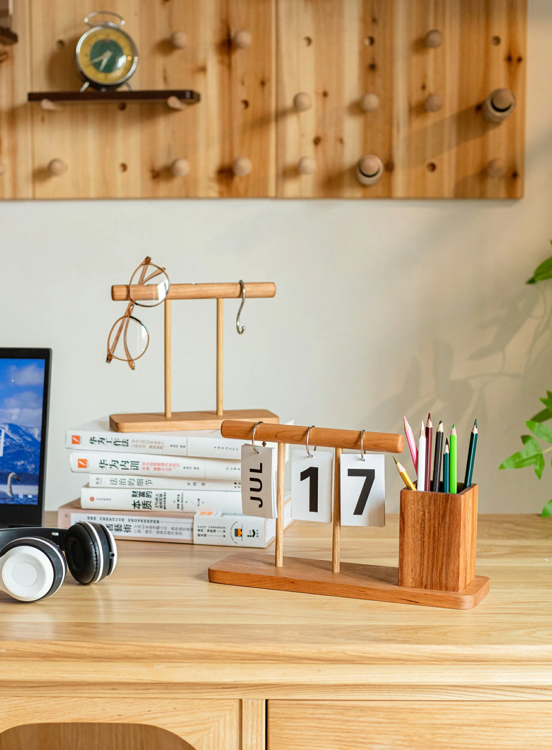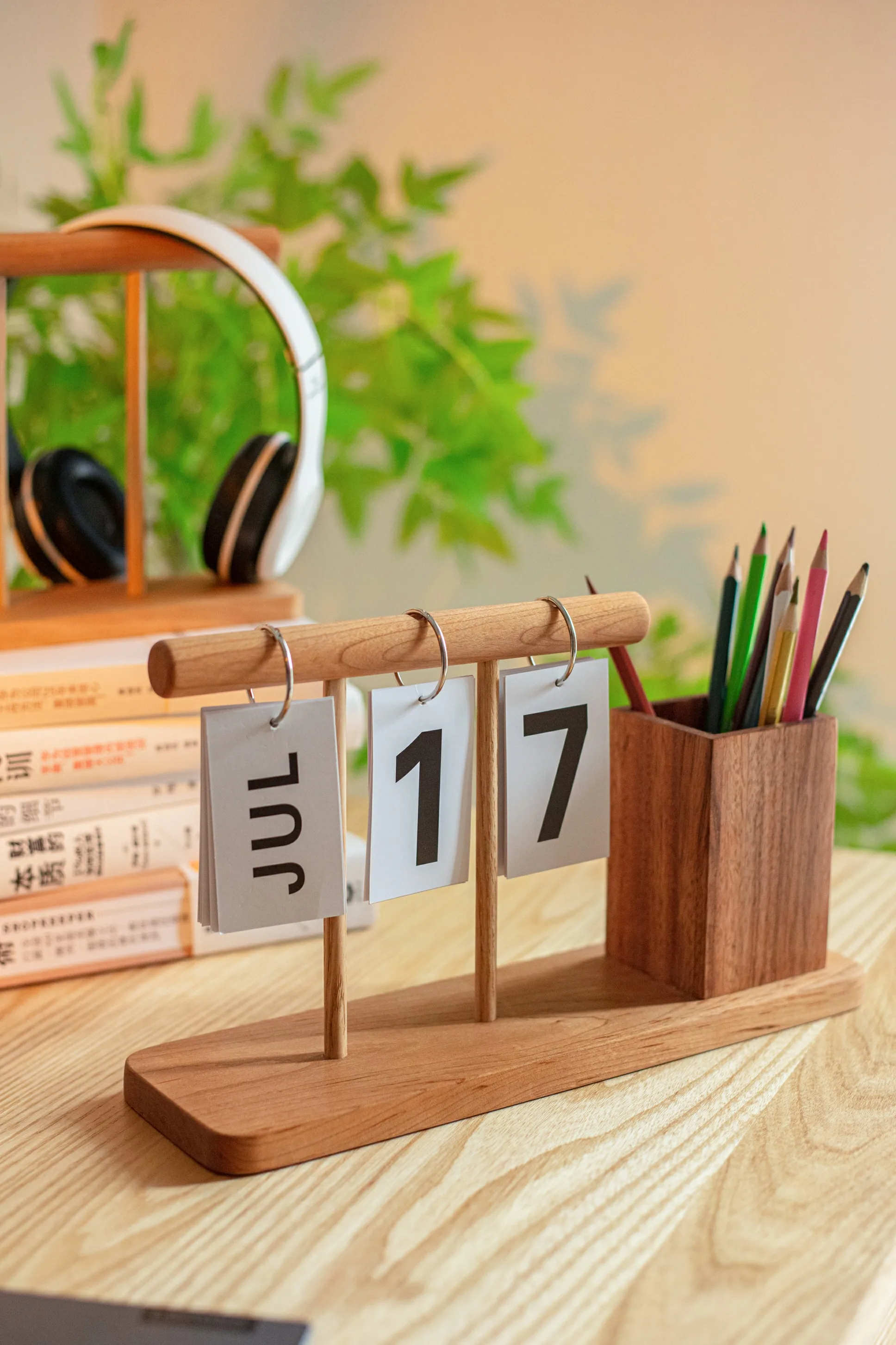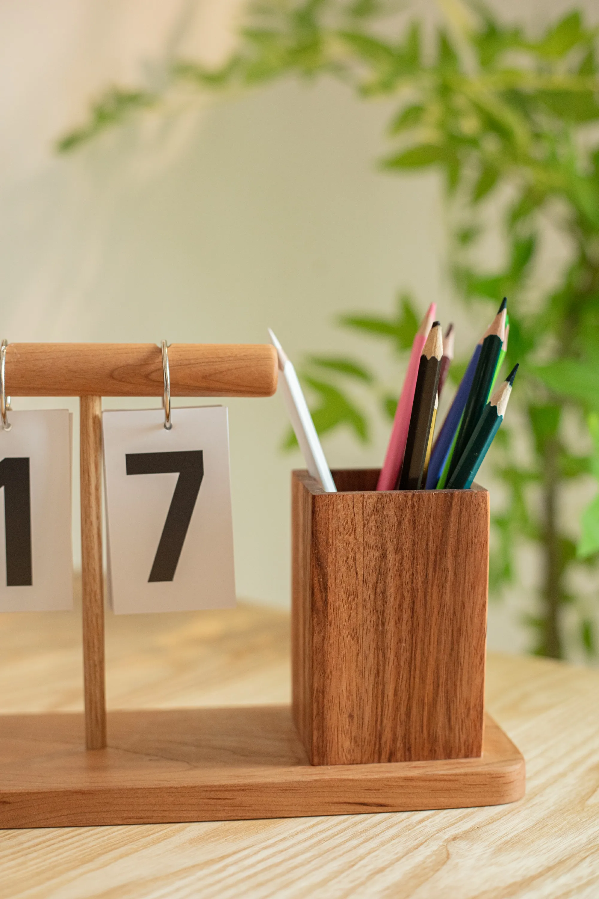 1*Wooden Calendar Pen Holder